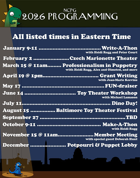 The NCPG is dedicated to sharing and promoting the Puppet Arts with the greater National Capital Area through workshops, performances, and special events.